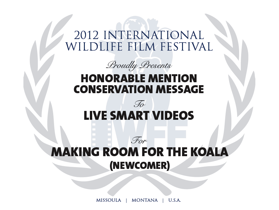 Happy to announce that Live Smart Videos has won an award for our recent documentary, “Making Room for the Koala.”